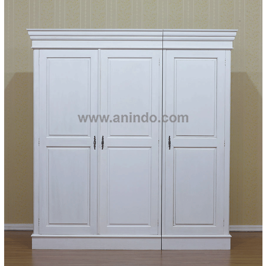 3 doors armoire is made of mahogany wood in antique distressed white painted finish. ...