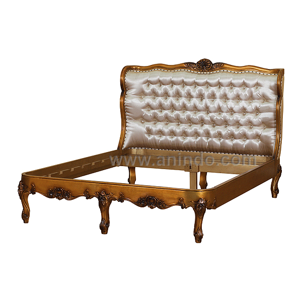 Jepara bed is made of mahogany wood in pecan combined with gold painted finish. Upholstered ...