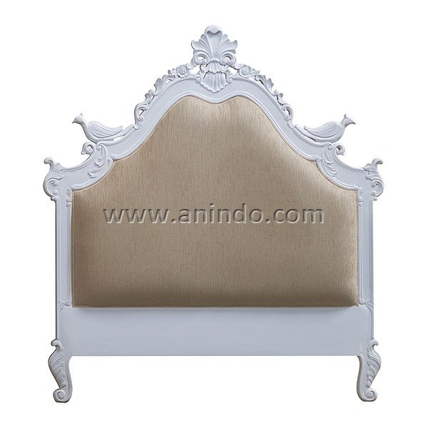 Bird headboard is made of mahogany wood in white painted finish. Upholstered in chocolate velvet fabric. It's queen size headboard. Available for all mattress size.