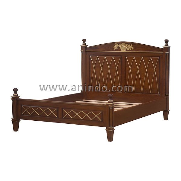 Jepara bed is made of mahogany wood in pecan combined with gold painted finish. Upholstered ...
