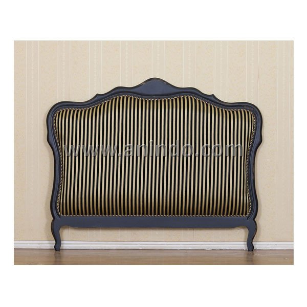 Getty headboard is made of mahogany wood in black painted finish. Upholstered in stripe fabric.