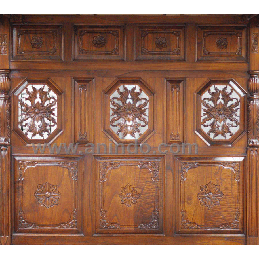 Javanese canopy bed is made of solid mahogany wood in pecan finish. It's king size bed. Available for all mattress size.