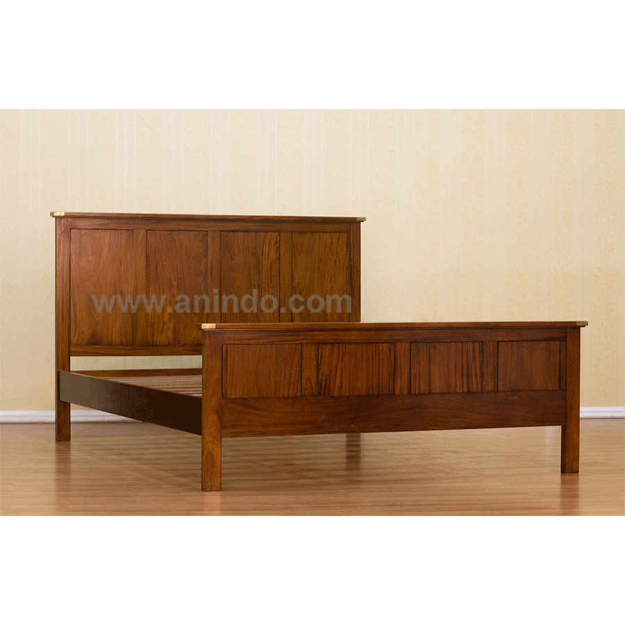 Minimalist bed is made of solid mahogany wood in pecan finish. Solid brass edges. It's queen size bed. Available for all mattress size.