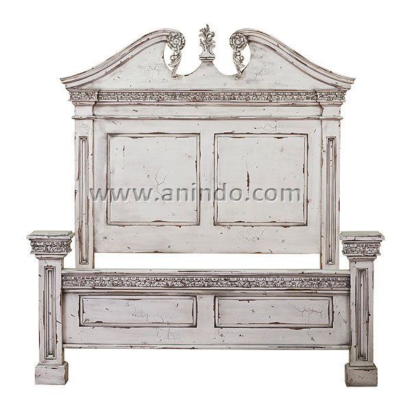 Victoria bed is made of mahogany wood in distressed white painted finish. It's queen size bed. Available for all mattress size.