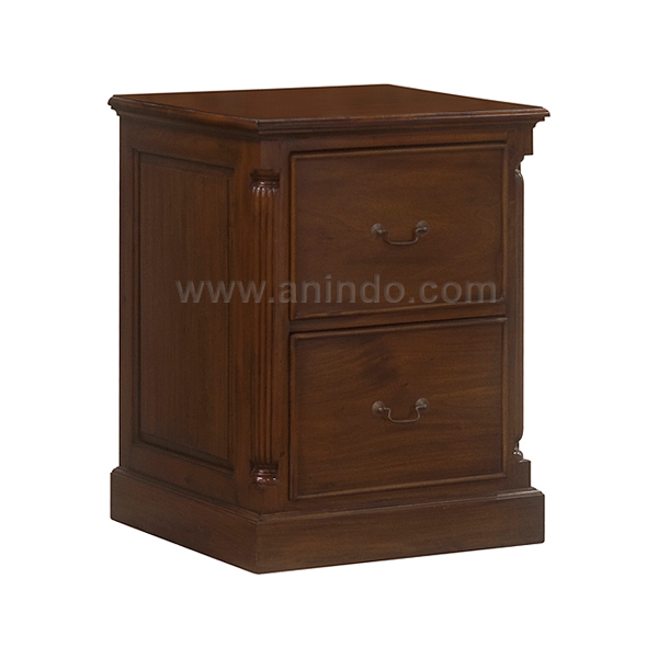 2 big drawers bedside cabinet is made of solid mahogany wood in pecan finish. Antique solid brass handles.