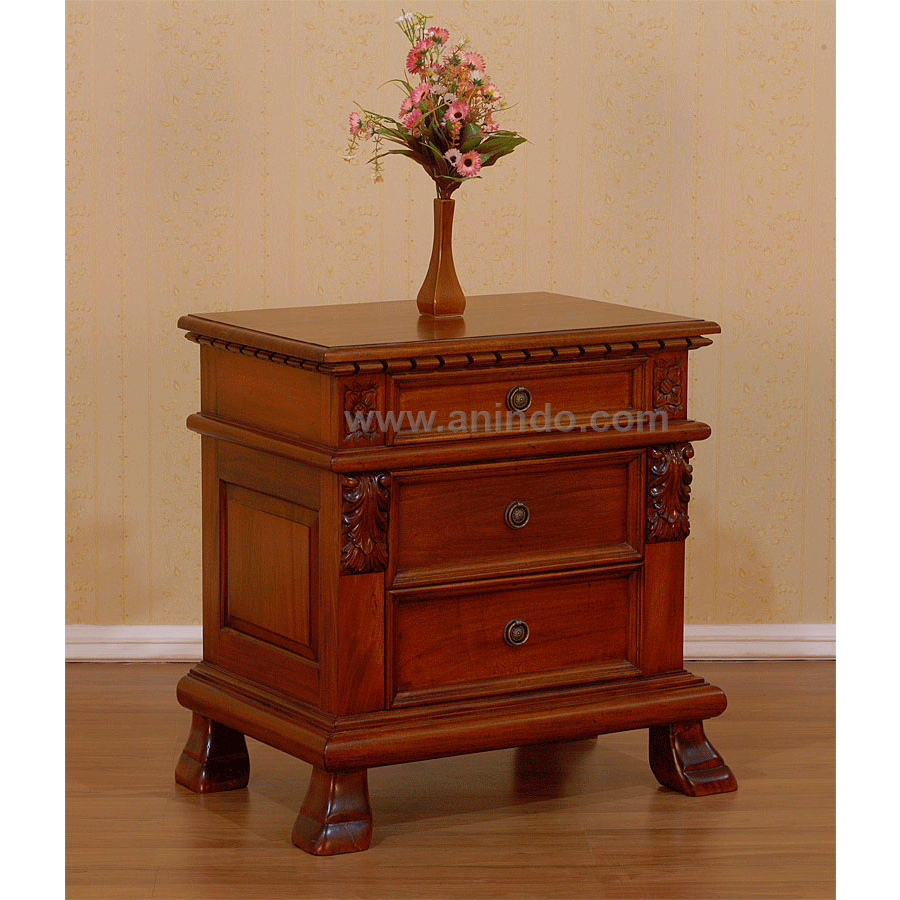 Toronto bedside cabinet 3 drawers is made of mahogany wood in tea brown finish. Antique ...