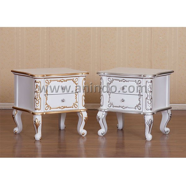 French bedside table 2 drawers carving is made of mahogany wood in white painted finish. ...