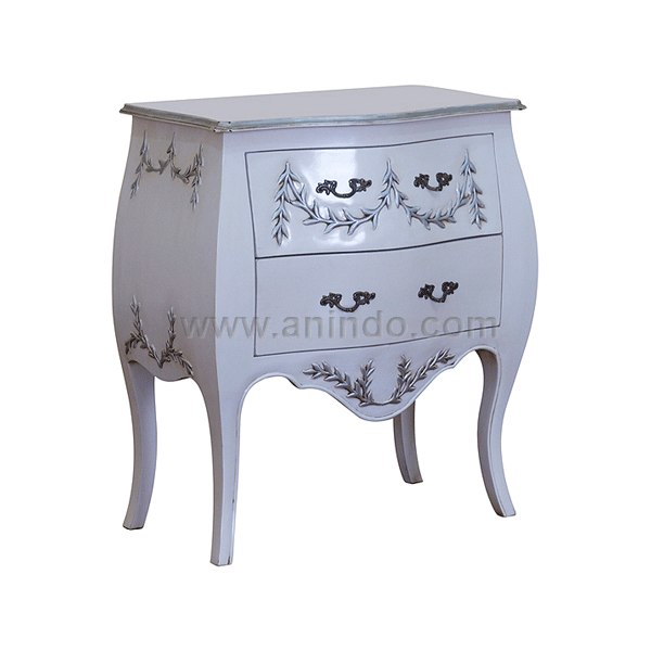 Floral bedside cabinet 2 drawers is made of mahogany wood in silver combined with black ...