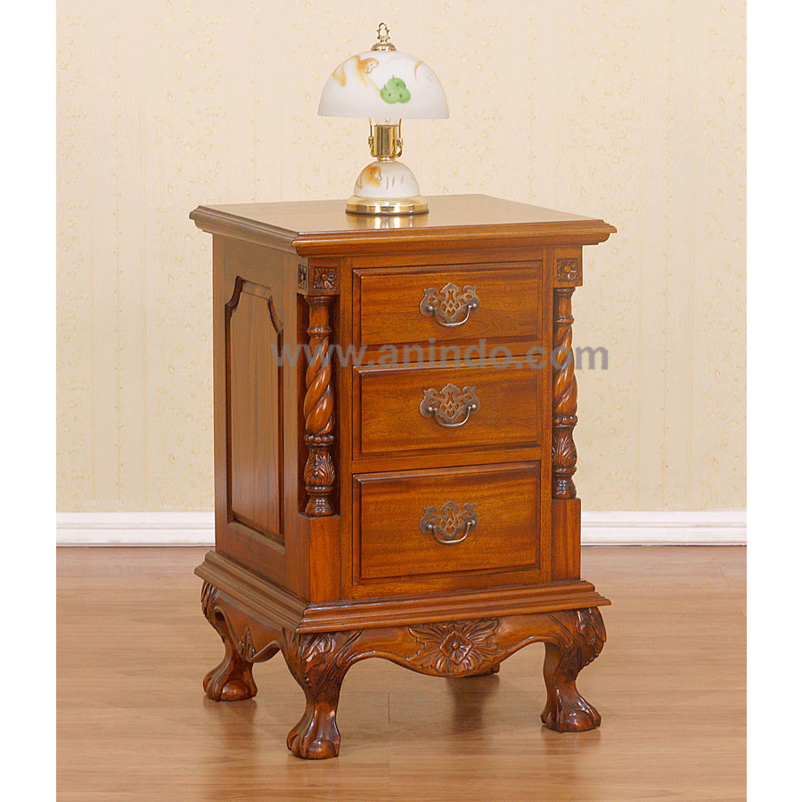 Antique 3 drawers bedside cabinet is made of solid mahogany wood in tea brown finish. ...
