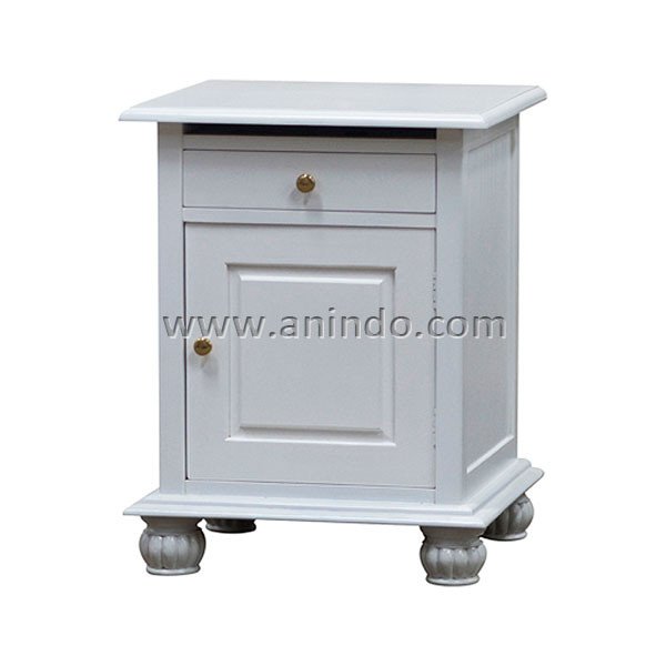 Colonial bedside cabinet 1 door 1 drawer is made of mahogany wood in distressed white ...
