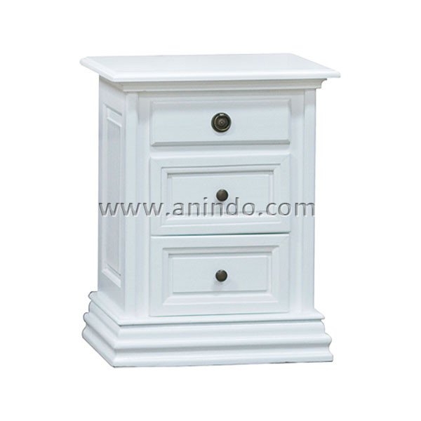 Rianti bedside cabinet 3 drawers is made of mahogany wood in white painted finish with ...