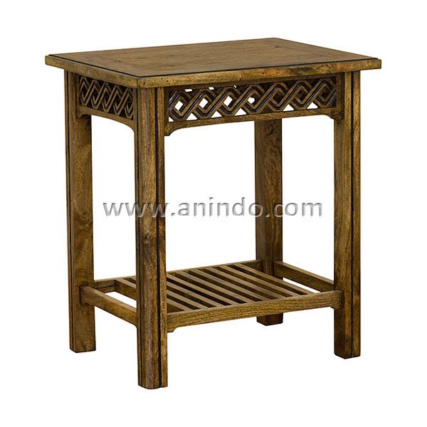 Kentucky bedside table 1 shelf is made of sustainable solid mango wood in antique finish.