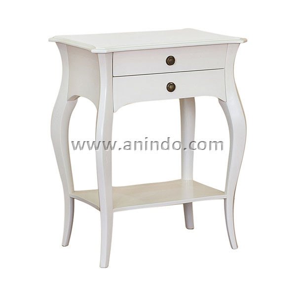 Kidney bedside table 2 drawers carving is made of mahogany wood in white painted finish. ...