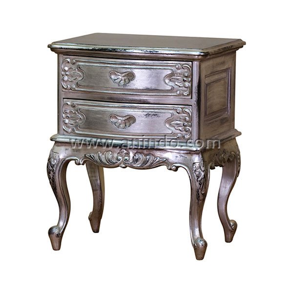 Belle bedside table 2 drawers is made of mahogany wood in silver leaf finish. Antique solid ...