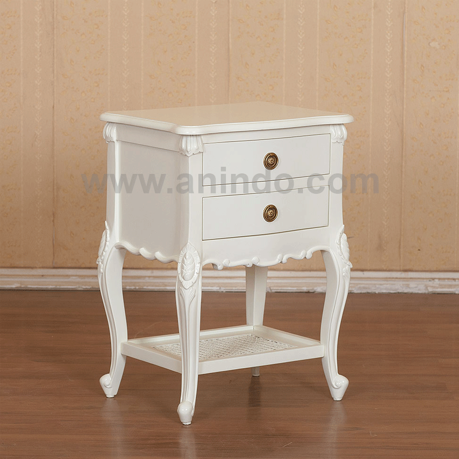 Kidney bedside table 2 drawers carving is made of mahogany wood in white painted finish. ...
