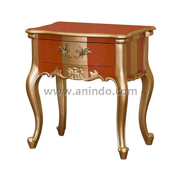 Kidney bedside table 2 drawers is made of mahogany wood in gold leaf ...