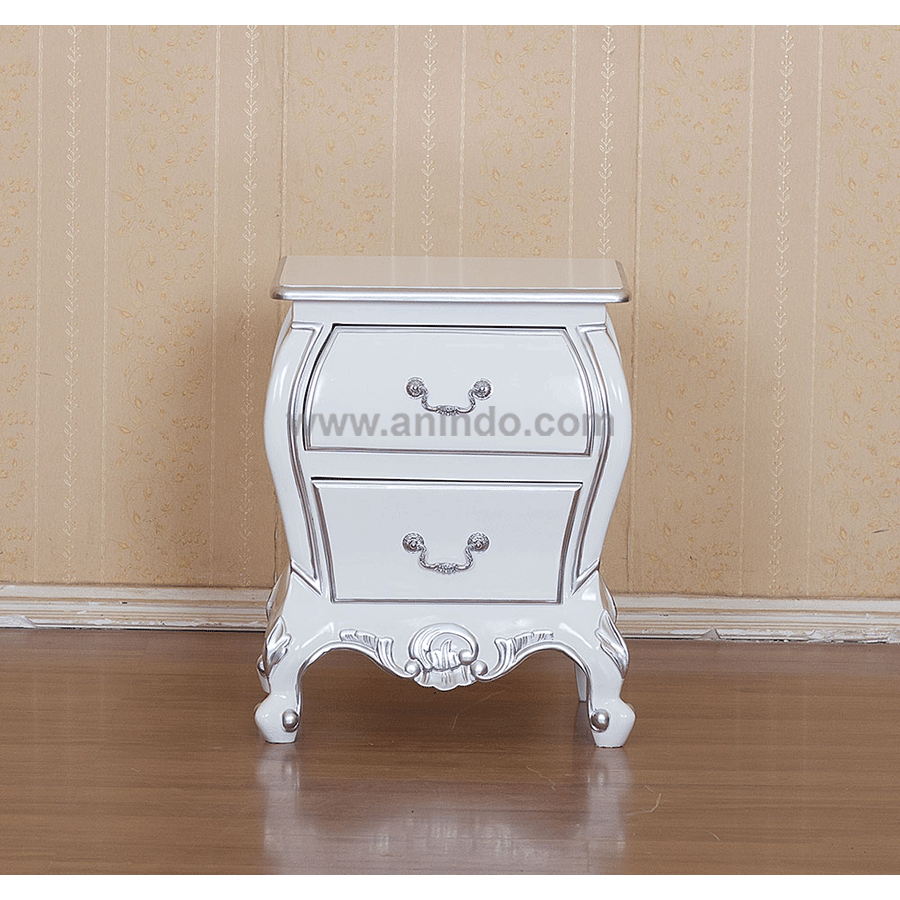 Morocco bedside table 2 drawers is made of mahogany wood in white combined with silver ...