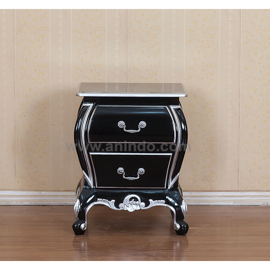 French bedside table 2 drawers carving is made of mahogany wood in black painted finish. ...