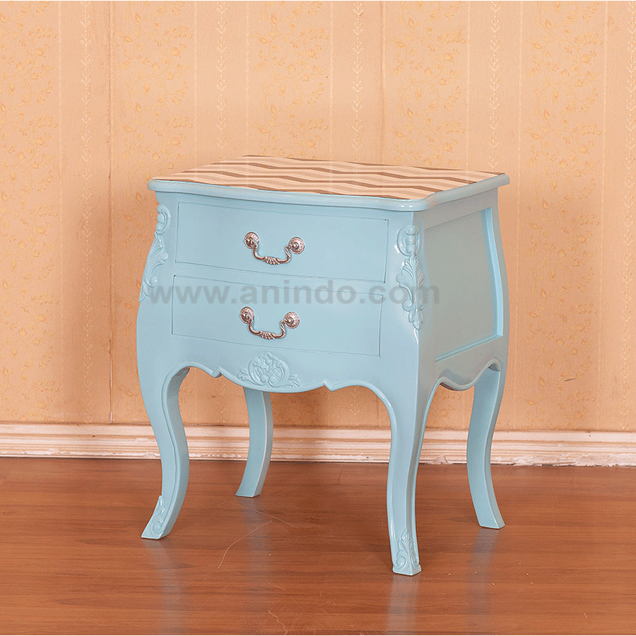 French bedside table 2 drawers carving is made of mahogany wood in white painted finish. ...