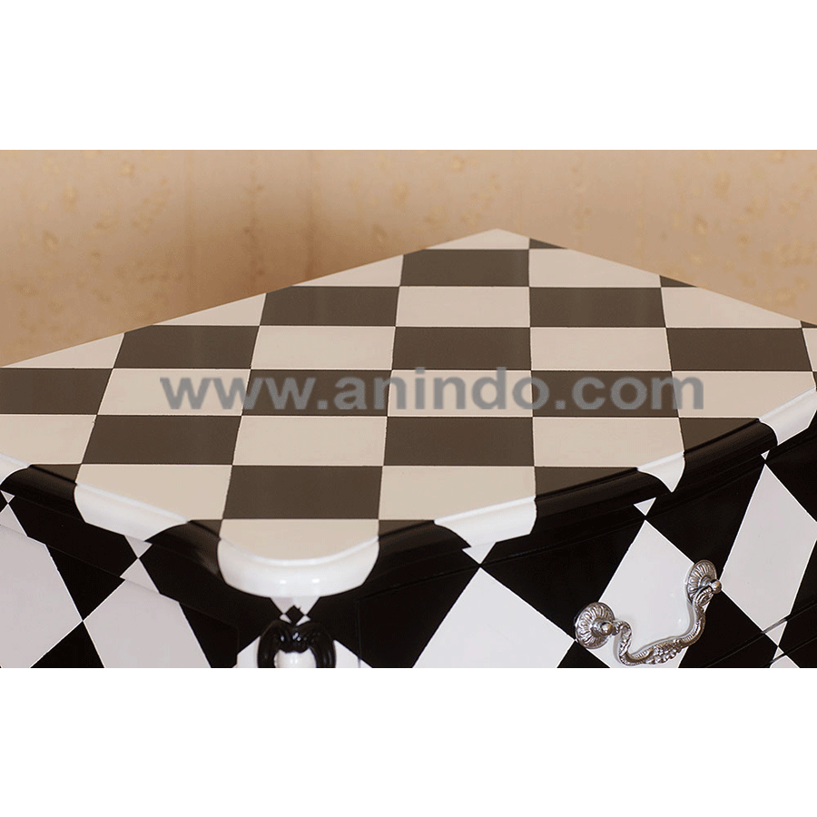 Murphy bedside table 2 drawers is made of mahogany wood in white combine black painted finish. Silver solid brass handles.