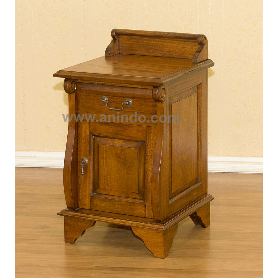 Colonial bedside cabinet 1 door with 1 drawer is made of solid mahogany wood in pecan ...