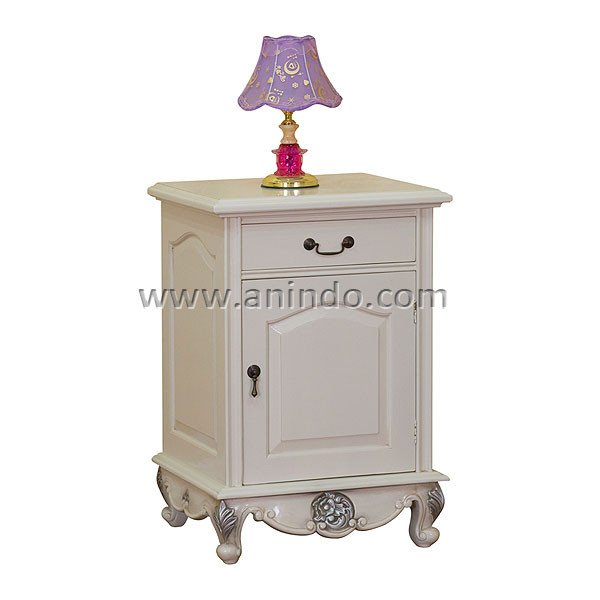Colonial bedside cabinet 1 door 1 drawer is made of mahogany wood in distressed white ...