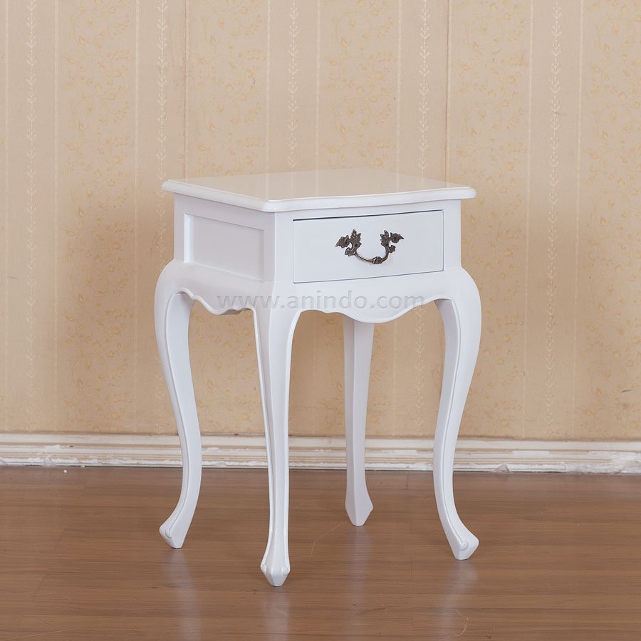 Colonial bedside cabinet 1 door 1 drawer is made of mahogany wood in distressed white ...