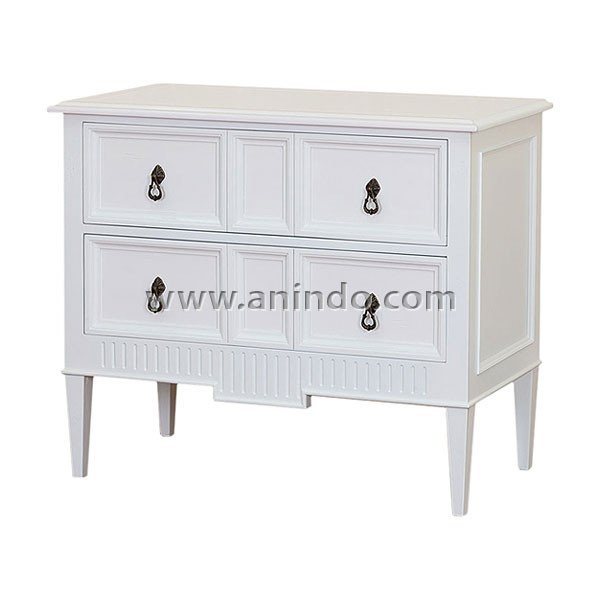 Our chest 2 drawers is made of mahogany wood in white painted finish.
