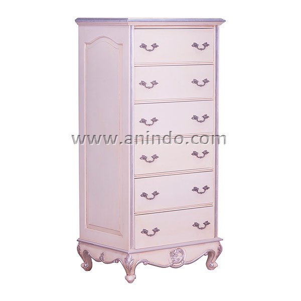 Kansas chest 6 drawers is made of mahogany wood in antique white combined with silver painted finish.