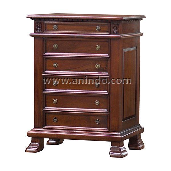 Commode 6 drawers is made of mahogany wood in tea brown ...