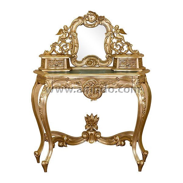 Our angel dressing table is made of mahogany wood in gold leaf finish.