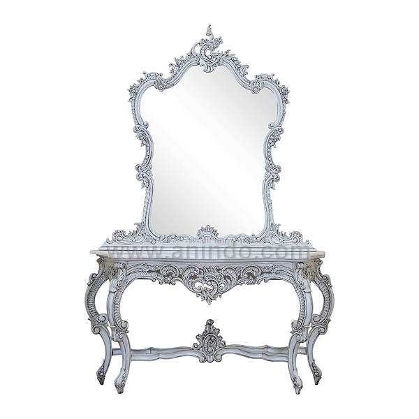 Our bouman dressing table with mirror is made of mahogany wood in silver painted finish.