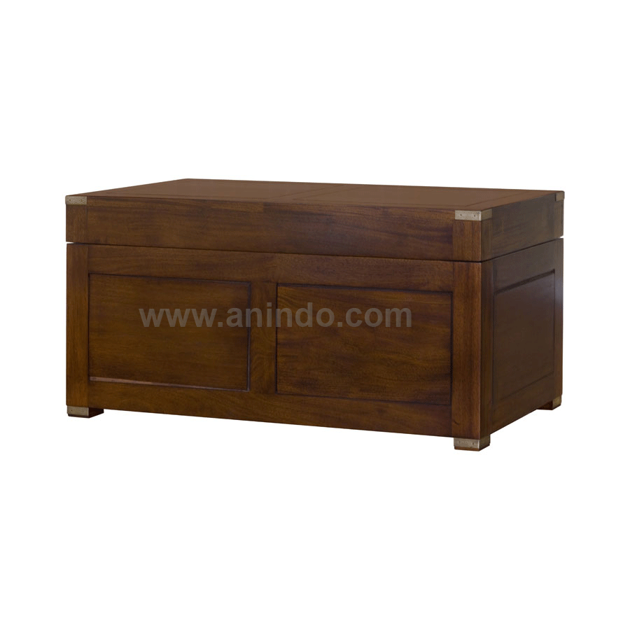 Military Blanket box corner made of solid mahogany wood in walnut finish. Antique solid brass hardwares.