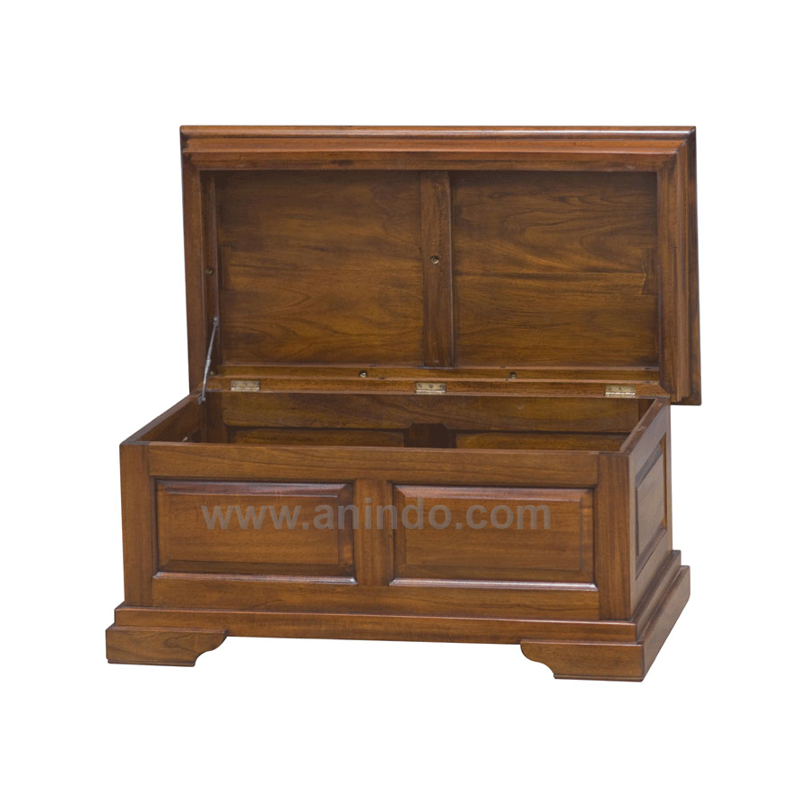Sleigh blanket box is made of solid mahogany wood in walnut finish.