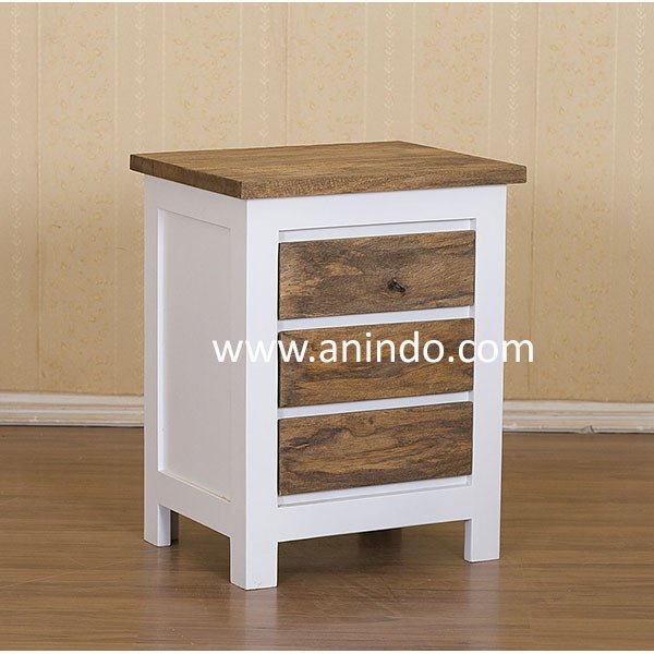 Donorojo 3 drawers bedside is made of sustainable mango wood in white painted finish with rustic solid mango wood on top and each drawers.