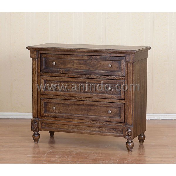 Robayan chest of 3 drawers is made of sustainable solid mango wood in ceruse finish. Antique solid brass handles.