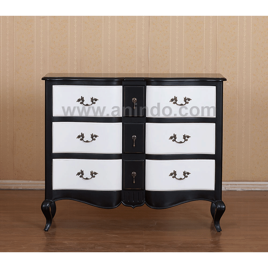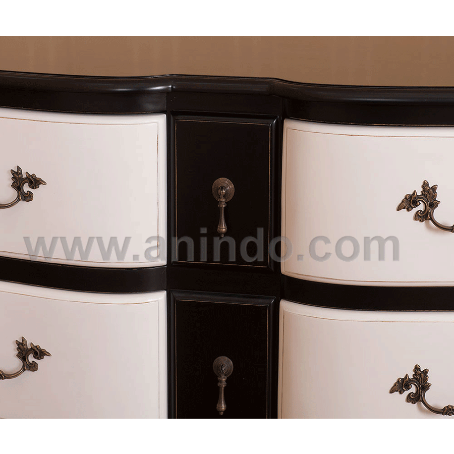 French buffet 9 drawers is made of mahogany wood in black combined with white painted finish. Antique solid brass handles.