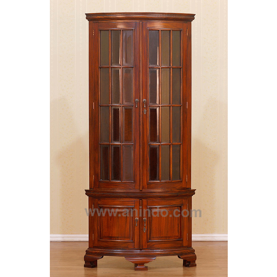Corner display cabinet 2 doors is made of solid mahogany wood in pecan ...