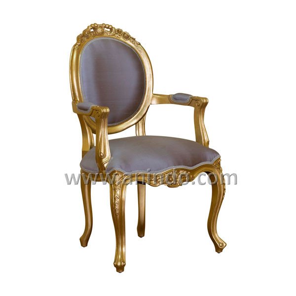 Our french chair diner is made of?mahogany wood in gold leaf finish. Upholstered in grey ...