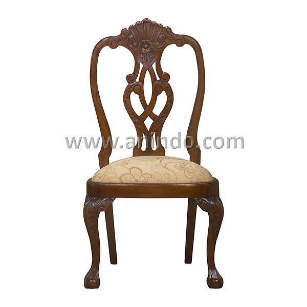 Chippendale chair is made of mahogany wood in pecan finish.Upholstered in light brown floral fabric.