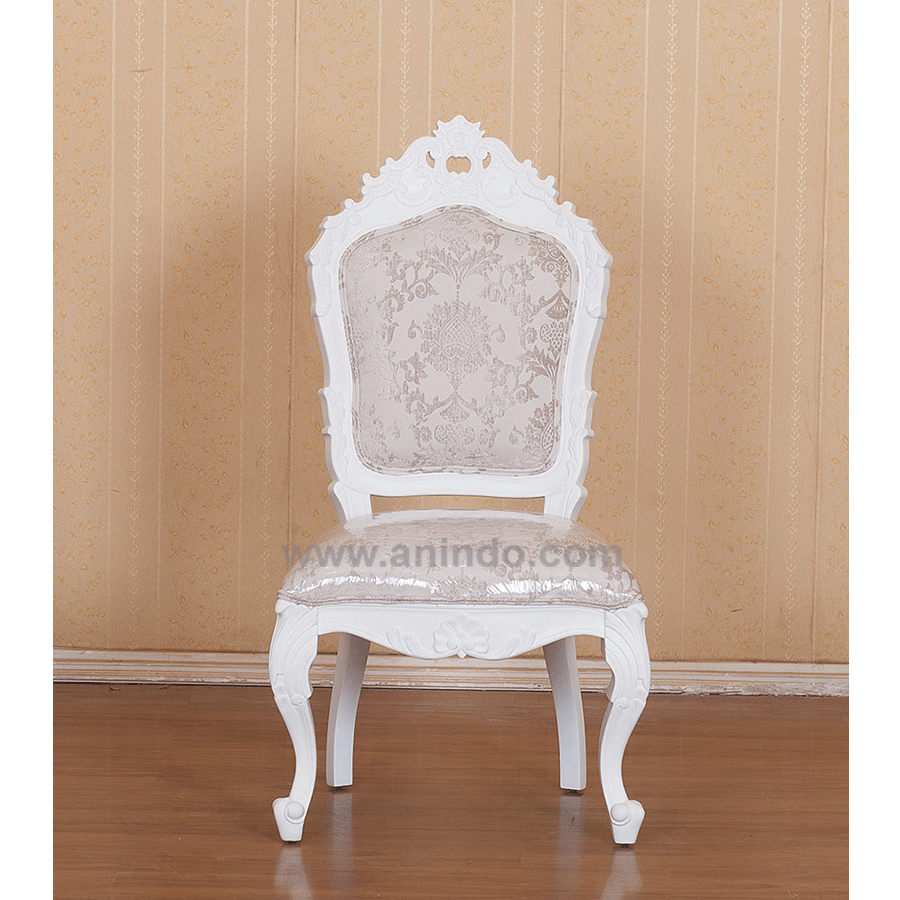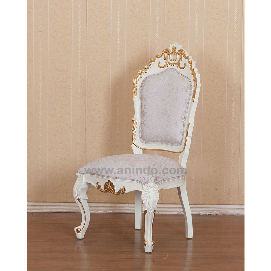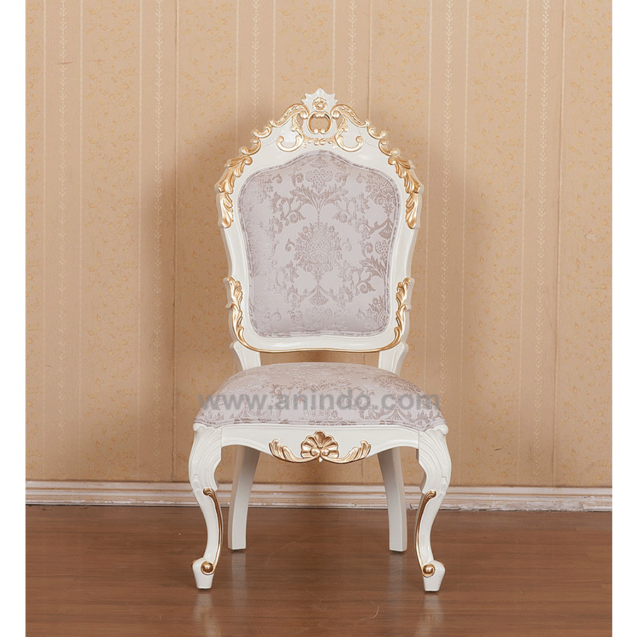 Our destiara carved chair diner is made of?mahogany wood in white combined with gold ...