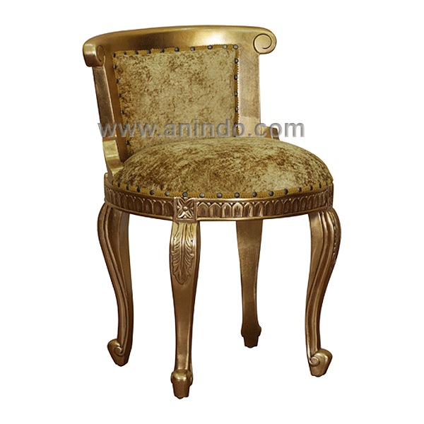 Our?round carved?chair?is made of?mahogany wood in gold leaf finish. Upholstered in?100% fabric.