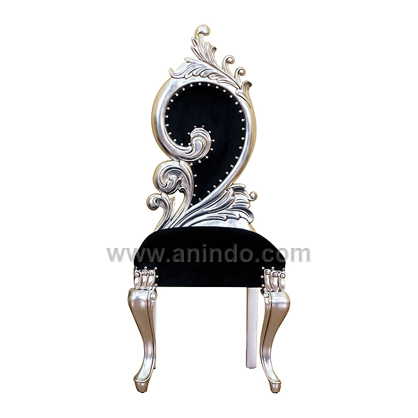 Our tall back chair lower R is made of mahogany wood in?silver leaf finish. Upholstered in black velvet fabric.