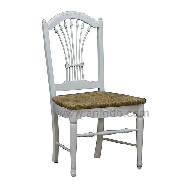 Our jamari chair is made of mahogany wood in white painted finish. With rush seat.
