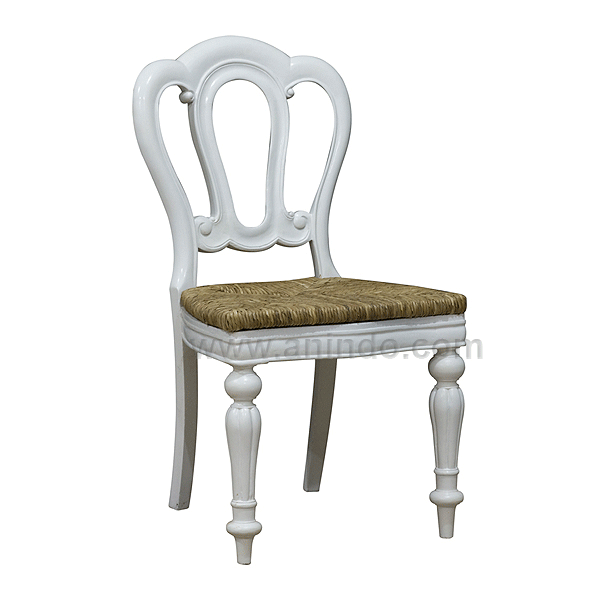 Our dutch dining chair is made of mahogany wood in white painted finish. With rush seat.