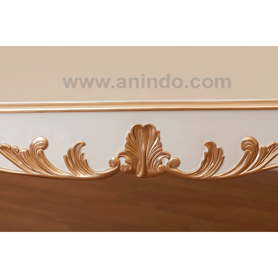 Our?recta carved dining table is made of solid mahogany wood in white combine with gold painted finish.