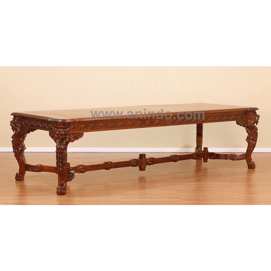 Lion dining table is made of mahogany wood in pecan finish.