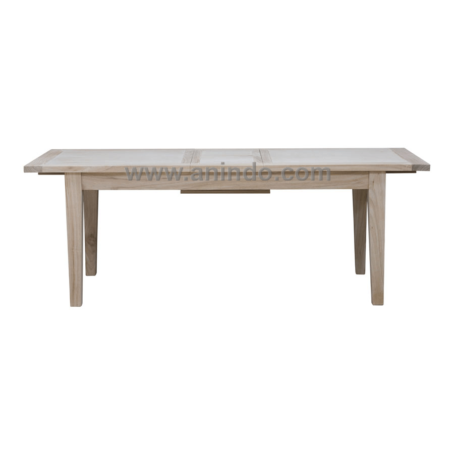 Mindi extension dining table 11 is made of solid mindi wood in natural finish.