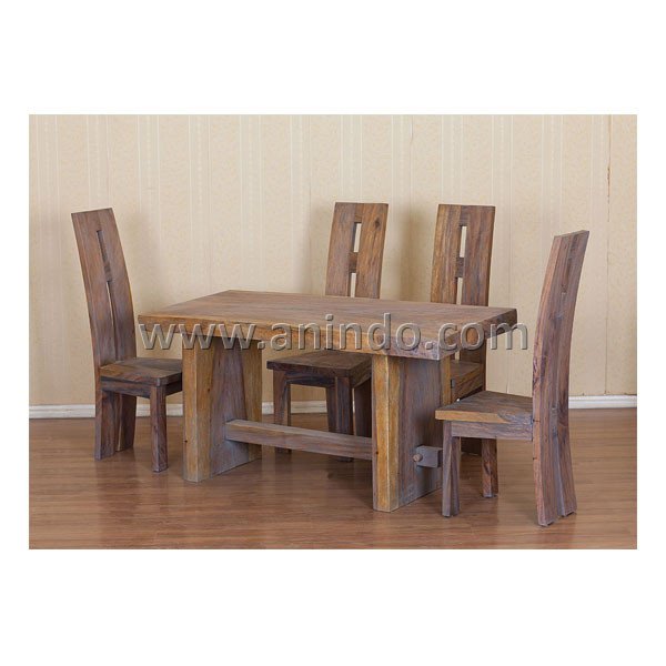 Rustic dining table with 4 dining chairs is made of solid suar wood in rustic finish.