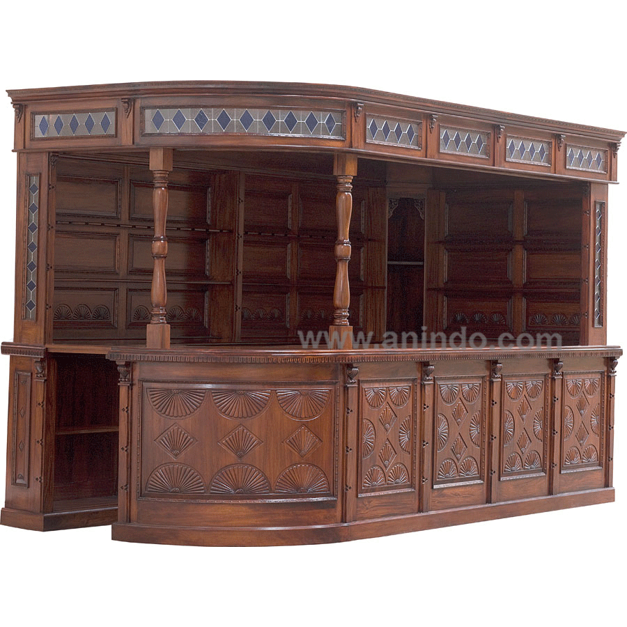 Carved bar table is made of solid mahogany wood in pecan finish. It is hand carving bar ...